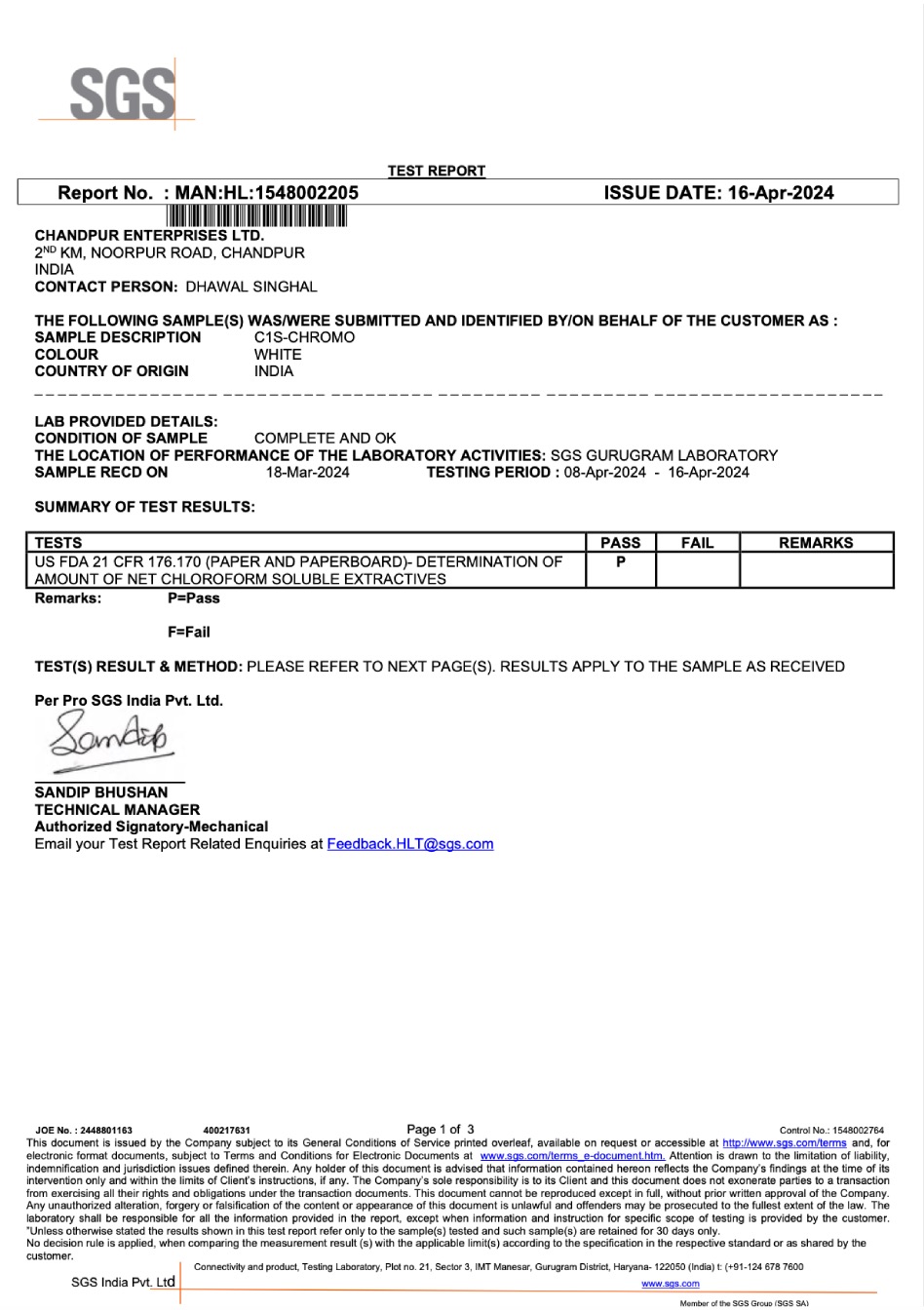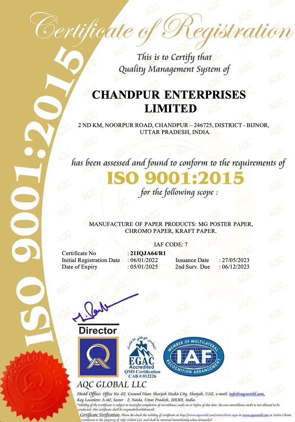 Chandpur Enterprises Limited, 2nd K.M. Chandpur- Noorpur Road, Chandpur, District Bijnor- 246725 (U.P.)